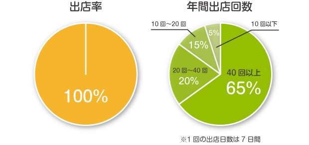 なお「催事.JP」に掲載をすると1年間で52週あるうち、40週以上出店しておられる業者様が実に65%